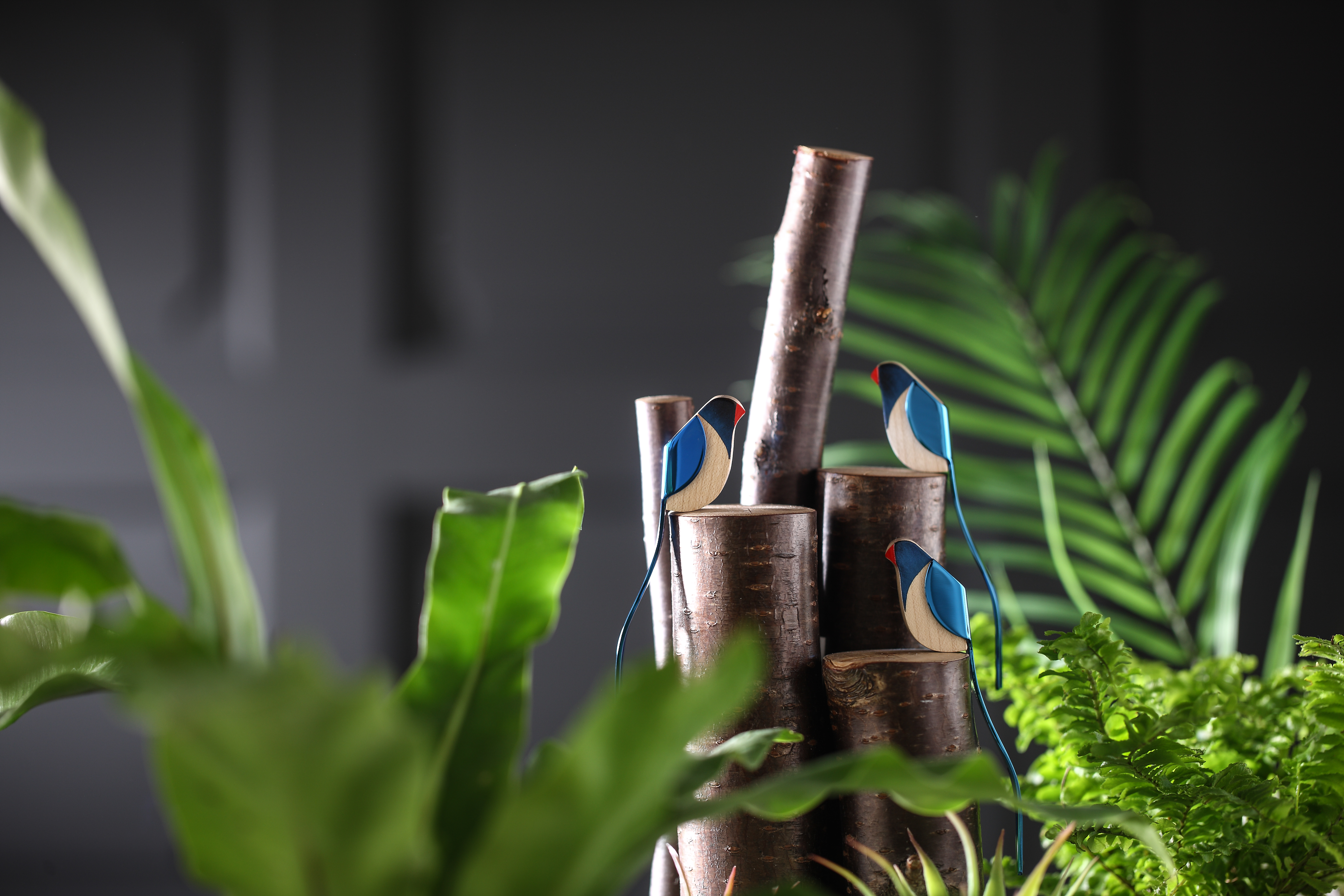 商品結合台灣中部的漆藝 點綴出台灣藍鵲的漸層羽毛 木材結合金屬 再以鍍鈦方式 讓不鏽鋼呈現亮麗的顏色 並利用磁鐵特性模擬鳥類的姿態 設計加入趣味 為餐桌上妝點歡愉、美味的氣氛 建議搭配品牌任何一個載體使用 是餐具也是家飾 展現美感與功能並存